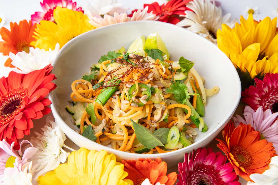 The plant-based Glow Bowl ($9.50) combines spicy sweet potato noodles, bok choy, zucchini, jalapeño, shiitake mushroom, coconut milk and sunflower butter. Vegan and gluten-free, this bowl is offered in January only.