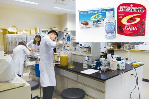 例えば、冒頭のキャッチコピーを表示した食品に含まれるのが「GABA(ギャバ)」という成分。このGABAを開発し、食品素材として食品メーカーに販売するのが京都市のベンチャー企業、ファーマフーズだ。国内で機能性表示食品として届け出られているGABA含有商品は約250件。そのうち約8割が同社の販売する「ファーマギャバ」を食品素材として使用している。