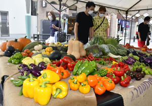 NPO法人郡山農学校、あおむしくらぶ、郡山ブランド野菜協議会による「あぐり市」は9日、郡山市のなかまち夢通りで開かれ、来場者が取れたての夏野菜を買い求めた。郡山中央通り商店街振興組合、郡山農業青年会議所の共催。