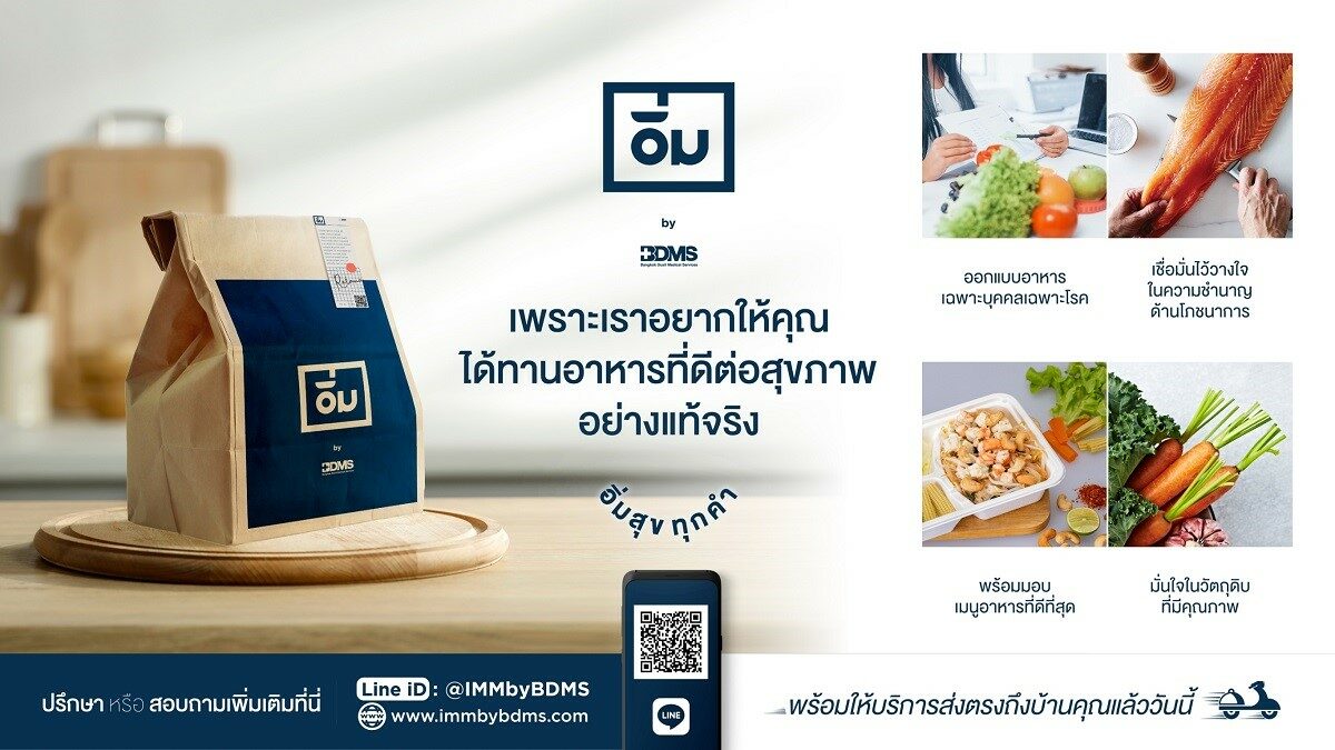 อาหารถือเป็นหนึ่งในปัจจัยสำคัญของการมีสุขภาพที่ดีในระยะยาว โดยเฉพาะอาหารที่เหมาะกับผู้ที่มีปัญหาสุขภาพ ต้องใส่ใจทั้งหน้าตา รสชาติ และโภชนาการที่เหมาะสม เพื่อให้อร่อยถูกปาก ลดความเสี่ยงโรคและฟื้นฟูสุขภาพให้ดีขึ้น อิ่ม by BDMS พร้อมดูแลอาหารสุขภาพเฉพาะบุคคล เฉพาะโรค เพื่อตอบโจทย์ความต้องการของคุณ โดยทีมแพทย์ นักกำหนดอาหาร และเชฟที่มีความรู้และประสบการณ์ด้านโภชนาการในการดูแลอาหารให้กับผู้ป่วย ทำงานร่วมกันในการคิดเมนูสุขภาพประกอบด้วยสารอาหารที่เหมาะกับร่างกายของแต่ละคนอิ่ม by BDMS มีการออกแบบอาหารตามหลักโภชนาการที่ถูกต้อง มีการดูแลรักษาและป้องกันการเกิดโรคด้วยคุณภาพและบริการที่ได้มาตรฐาน วัตถุดิบมีคุณภาพ สดใหม่ สะอาด ถูกหลักอนามัย ปราศจากสารพิษ มีการวิเคราะห์สุขภาพอย่างละเอียด เพื่อกำหนดสูตรอาหารเฉพาะ ส่วนผสมที่เหมาะสมผ่านการคำนวณปริมาณที่ถูกต้องตามหลักโภชนบำบัด โดยทุกเมนูจะมีการคำนวนสัดส่วนอย่างละเอียด เพื่ออาหารที่เหมาะสมและตรงตามความต้องการเฉพาะโรคของแต่ละบุคคล โดยแบ่งประเภทของอาหารออกเป็น 3 รูปแบบ นอกจากเมนูอาหารเพื่อสุขภาพ เน้นการคำนวณปริมาณและคุณค่าของอาหารให้ครบ 5 หมู่อย่างละเอียดและแม่นยำ ยังคำนึงรูปแบบการควบคุมน้ำหนัก เพิ่มมวลกล้ามเนื้อ และรูปแบบของอาหารช่วยควบคุมอาการของโรค เพื่อที่จะมั่นใจว่าจะได้อาหารที่เหมาะสม และตรงตามความต้องการเฉพาะโรคของแต่ละบุคคล อย่างแท้จริง