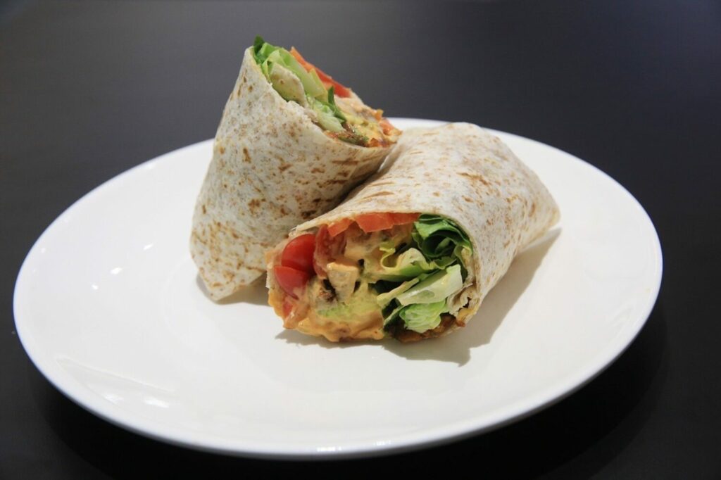 ในเมนูแร็ปยังมีให้เลือกหลากหลาย อย่างเมนูที่ทางร้านนำเสนอคือ ‘ชิมิชูรี สเต๊ก แร็ป’ นำเสนอเนื้อวัวเลี้ยงแบบธรรมชาติ ระดับพรีเมียมนำเข้าจากออสเตรเลีย ย่างแบบไม่ติดมัน ห่อด้วยแป้งแร็ปโฮลวีต อร่อยหนุบหนับและเต็มคุณค่าสารอาหารจากซุปเปอร์ฟู้ดส์ อย่างเบบี้สปิแนช และผักอบหอมกลิ่นเครื่องเทศ ราดด้วยซอสสูตรชิมิชูรี