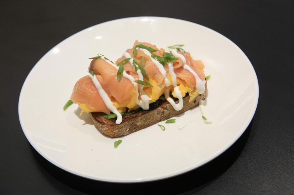 เป็นอาหารต่างทวีปที่พยายามประยุกต์เมนูและรสชาติให้ถูกปากคนไทย อย่างเมนู ‘สโมคแซลมอน ออน โทสต์’ เสิร์ฟสโมคแซลมอน พร้อมผักเบบี้สปิแนช บนไข่ข้นและครีมชีส และขนมปังโฮลวีตปิ้ง สัมผัสกรอบนอกนุ่มในอร่อยกลมกล่อม