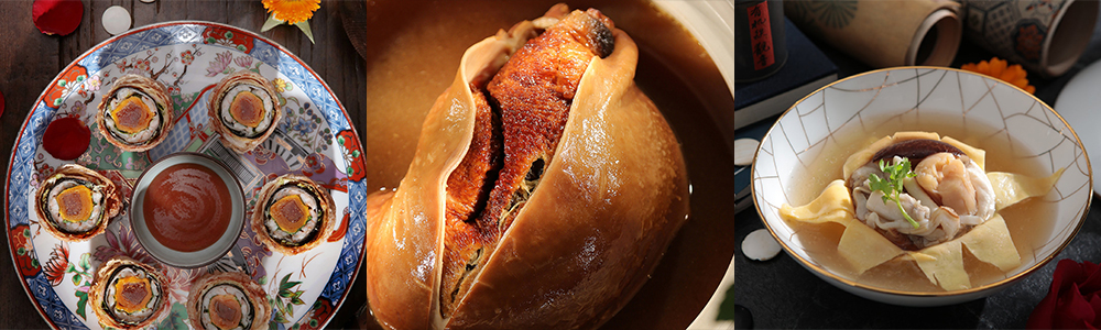 - The Scallop and Crysanthemum Soup (干貝菊花湯) ซุปหอยเชลล์กับดอกเก๊กฮวย ใช้ความพิถีพิถันในการตุ๋นหอยเชลล์และเห็ดมัตสึตาเกะห่อในไข่ตุ๋นเป็นซุป เวลาเสิร์ฟจะผ่าไข่ออกมาเป็นกลีบให้ดูเหมือนดอกเบญจมาศ