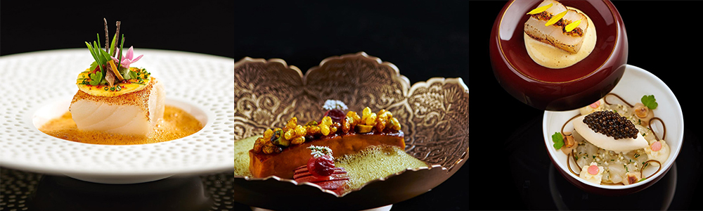 - Hokkaido Scallop เมนูหอยสแกลลอปจากฮอกไกโดกับเฮเซลนัทมิโซะ และ คาเวียร์โอเซตรา