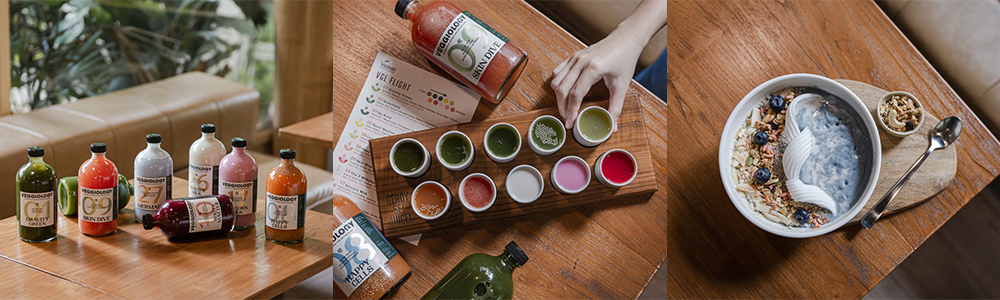หลายคนอาจจะคุ้นเคยกับแบรนด์ Veggiology น้ำผักผลไม้สกัดเย็นที่โด่งดังในกลุ่มคนรักสุขภาพ และวางขายตามซุปเปอร์มาร์เก็ตชั้นนำ ที่หน้าร้านย่านสุขุมวิท 41 ได้ทำเป็น Organic Café & Juice Bar ไว้นำเสนออาหารวีแกนและเครื่องดื่มเพื่อสุขภาพที่ปรุงกันแบบสด ๆ ตามออเดอร์ ภายในร้าน ตกแต่งสไตล์ Mid-Century ให้ความรู้สึกอบอุ่น ผ่อนคลาย นอกจากอาหารและเครื่องดื่ม ก็ยังจำหน่ายสินค้าออร์แกนิคหลายอย่าง เช่น เมล็ดธัญพืช หรือสิ่งอุปโภคต่าง ๆ ที่ทำมาจากวัสดุธรรมชาติ