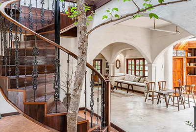 อาคารบ้านดิน 3 ชั้นนี้ใช้วัสดุที่เป็นธรรมชาติเกือบทั้งหมด ไม่ว่าจะเป็นดินขาว ไม้ไผ่สำหรับขึ้นโครง จะมีเพียงบางส่วนที่ใช้เหล็กเพื่อช่วยในงานโครงสร้างที่แข็งแรง และงานหินในส่วนของครัว สร้างเส้นทางภายในบ้านให้อากาศถ่ายเท ช่องตรงกลางบ้านเปิดระบายความร้อนขึ้นข้างบน และความชื้นจากดินยังช่วยให้อุณหภูมิภายในบ้านเย็นกว่าภายนอก เป็นอาคารปลูกสร้างที่ทำขึ้นโดยมีความตั้งใจให้เป็นมิตรกับสิ่งแวดล้อม